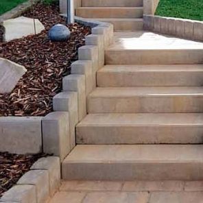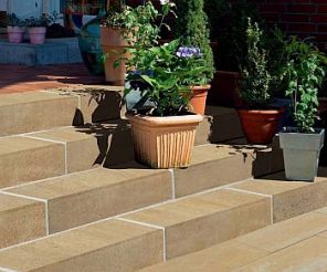 ![]() ![]() | Beige-Antik / Felsgrau / Sandstein Die Blockstufen mit farbnuancierter Trittfläche ![]() Durch die maschinelle Fertigung der Stufen |