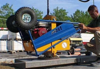 Für das wirtschaftliche und sichere Handling von schweren Lasten bis 2.500 kg, wie z.B. Granitplatten, "Saugdichte Betonelemente", Marmorplatten, Trittstufen, Rohre usw. zum Anhängen an ein beliebiges Trägergerät mittels Lasthaken, Kette, Seil o.ä.